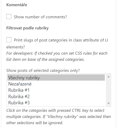 • Show posts of selected categories only? – zobrazit příspěvky jen z vybraných kategorií.