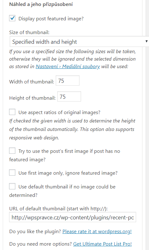 • Use default thumbnail if no image could be determined? – použít výchozí náhledový obrázek v případě, že není žádný nastaven.